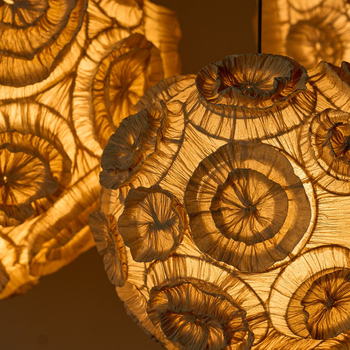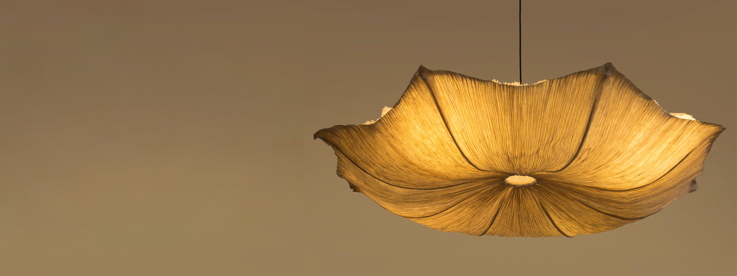 The paper holds its own structural logic: it is light yet resilient, sculptural yet porous, capable of soft diffusion and strong form. Over time, we’ve developed a nuanced material vocabulary — adjusting thickness, translucency, and texture to suit the needs of each design. Whether coaxed into fluid curves, pinched into folds, or layered to create depth, it responds intuitively to hand and method.