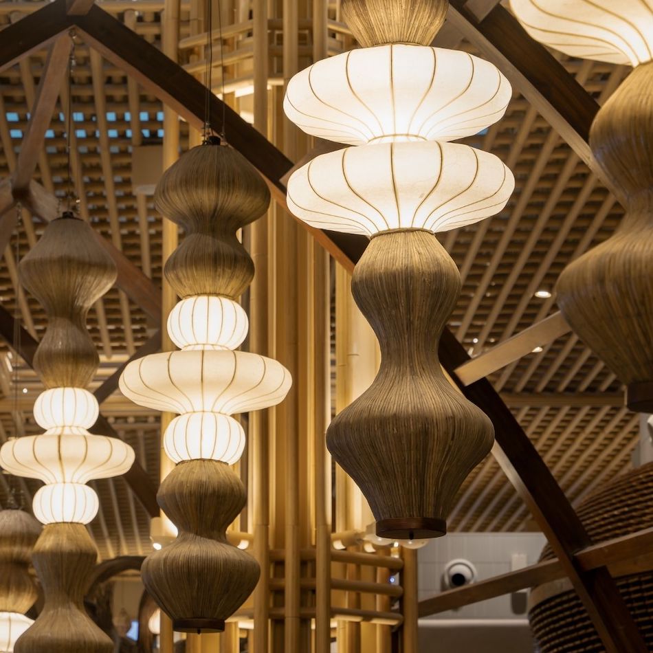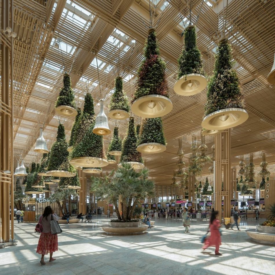 At Kempegowda International Airport’s Terminal 2—imagined as a “terminal in a garden”—Oorjaa brings light, craft, and sustainability into public space. Through installations across lounges and cafés, the Bengaluru-based studio transforms transit zones into moments of reflection.
