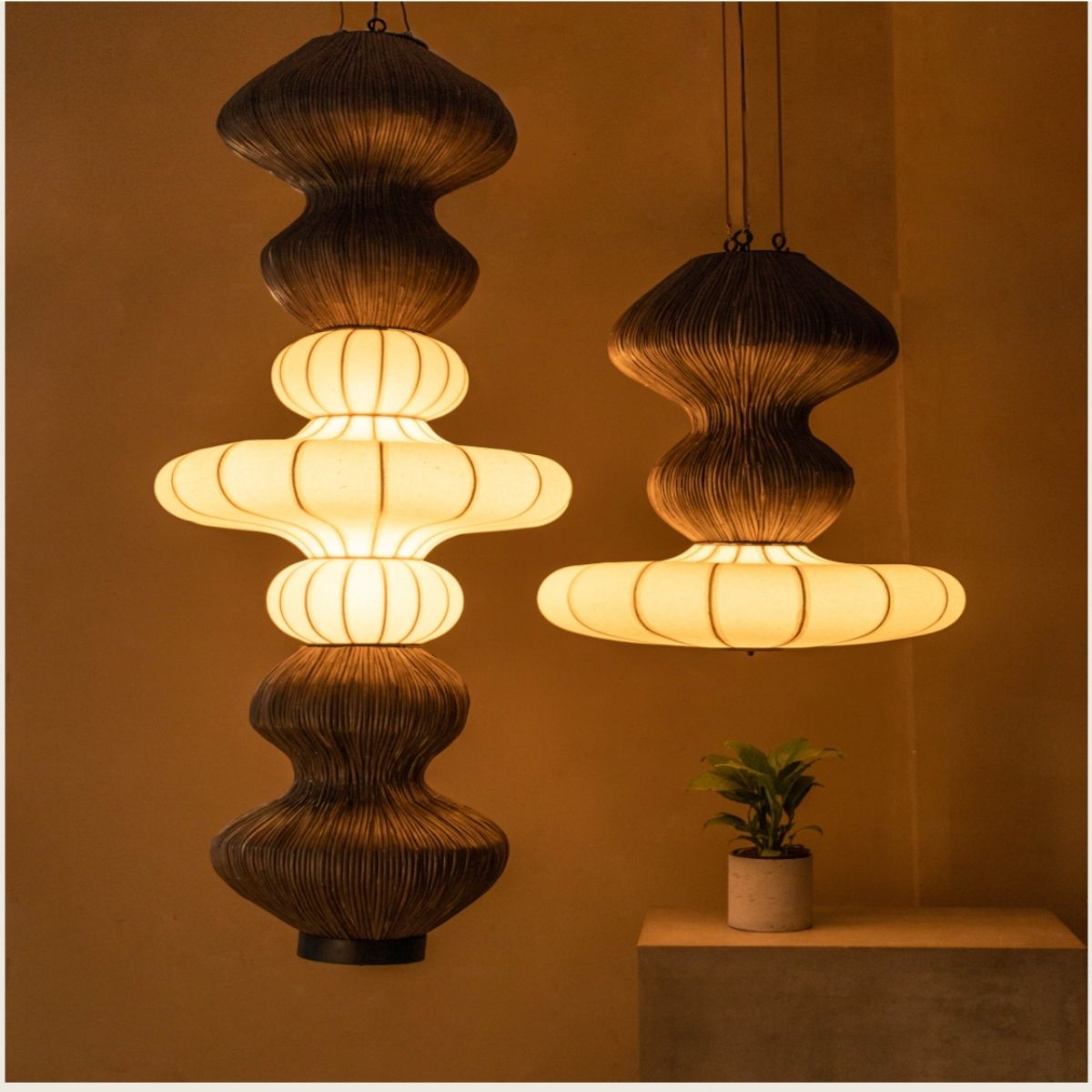 At Oorjaa, we reclaim this problematic plant and turn it into purpose-driven design. Under the collection Wild by Design, including Gaia, Kabini Partition, and other lighting pieces, Lantana is paired with banana fibre paper to create objects that are both sculptural and responsible.