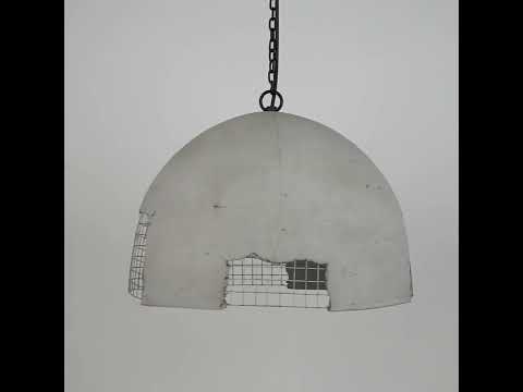 Fashioning weathered imperfections into a Folio Domical Mesh Fusion hanging lamp, handcrafted from feather cement, and suspended from a metal chain, to best suit modish living and hospitality spaces.