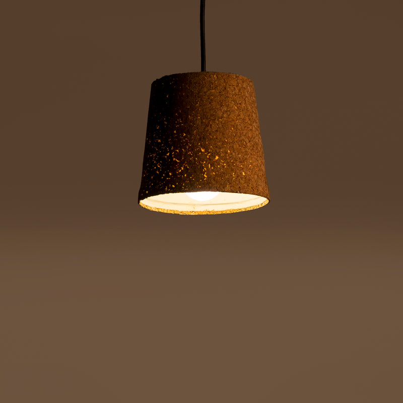 Contemporary forms find a novel expression is a hanging Giri lamp, handcrafted from light mixed cork, to lend a serene glow to residences and hospitality spaces.