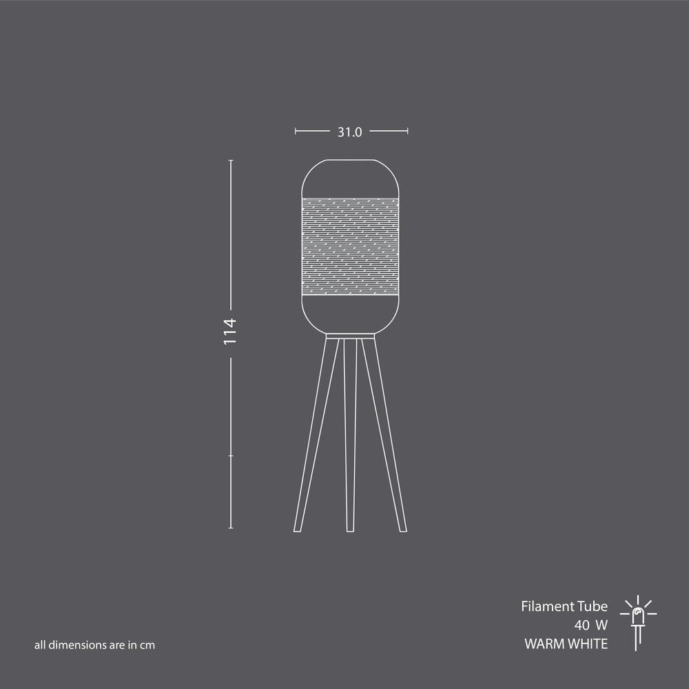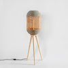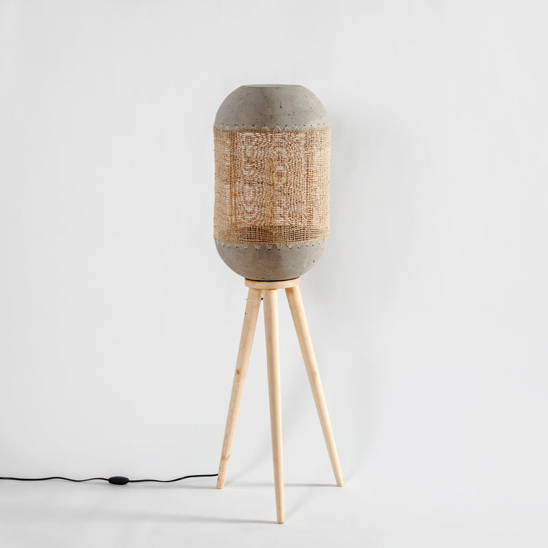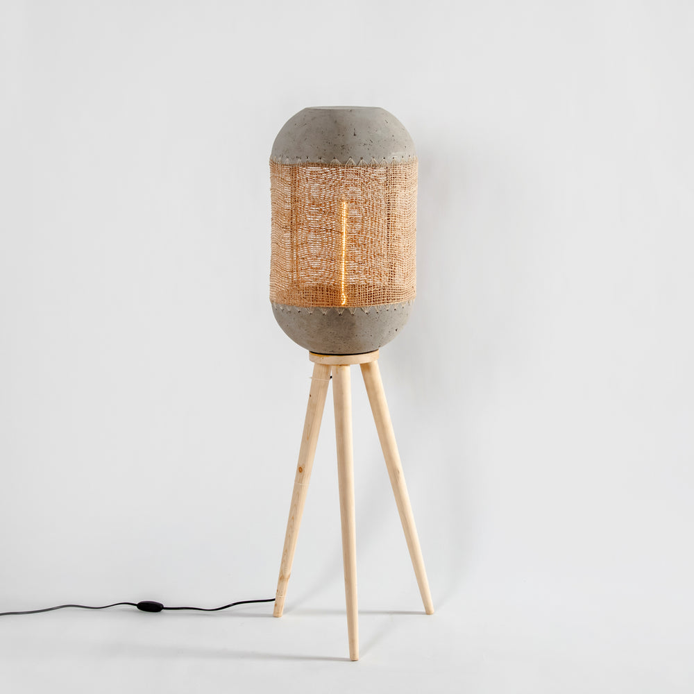 The glorious floor lamp stands gallantly on the tripod support. The collaboration of faux concrete and banana fiber weave is beautifully showcased in this floor lighting, and is apt to illuminate a residential or hospitality space.