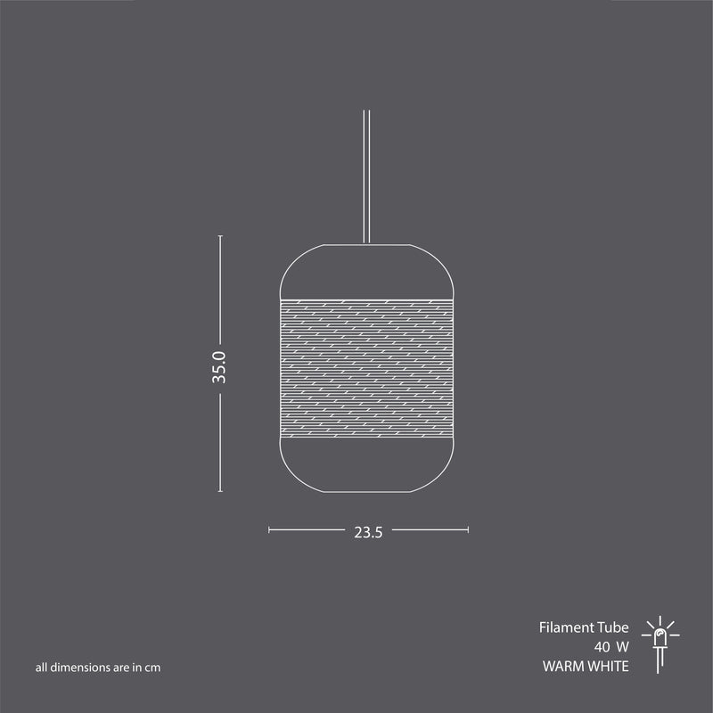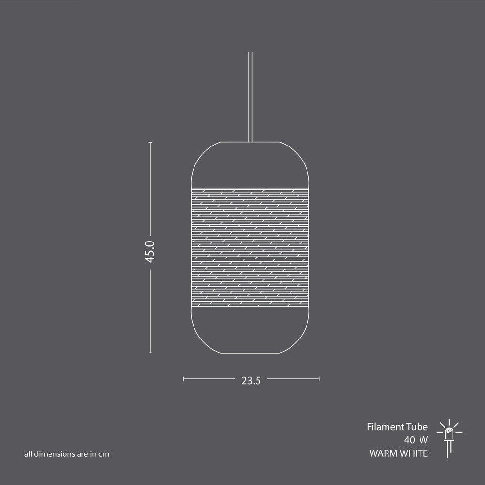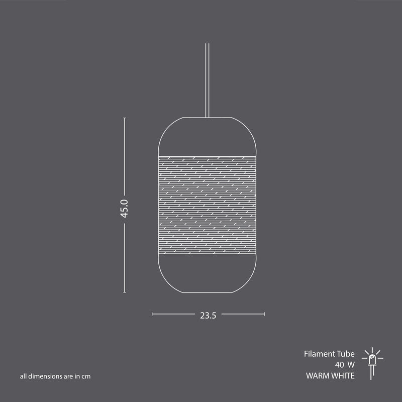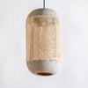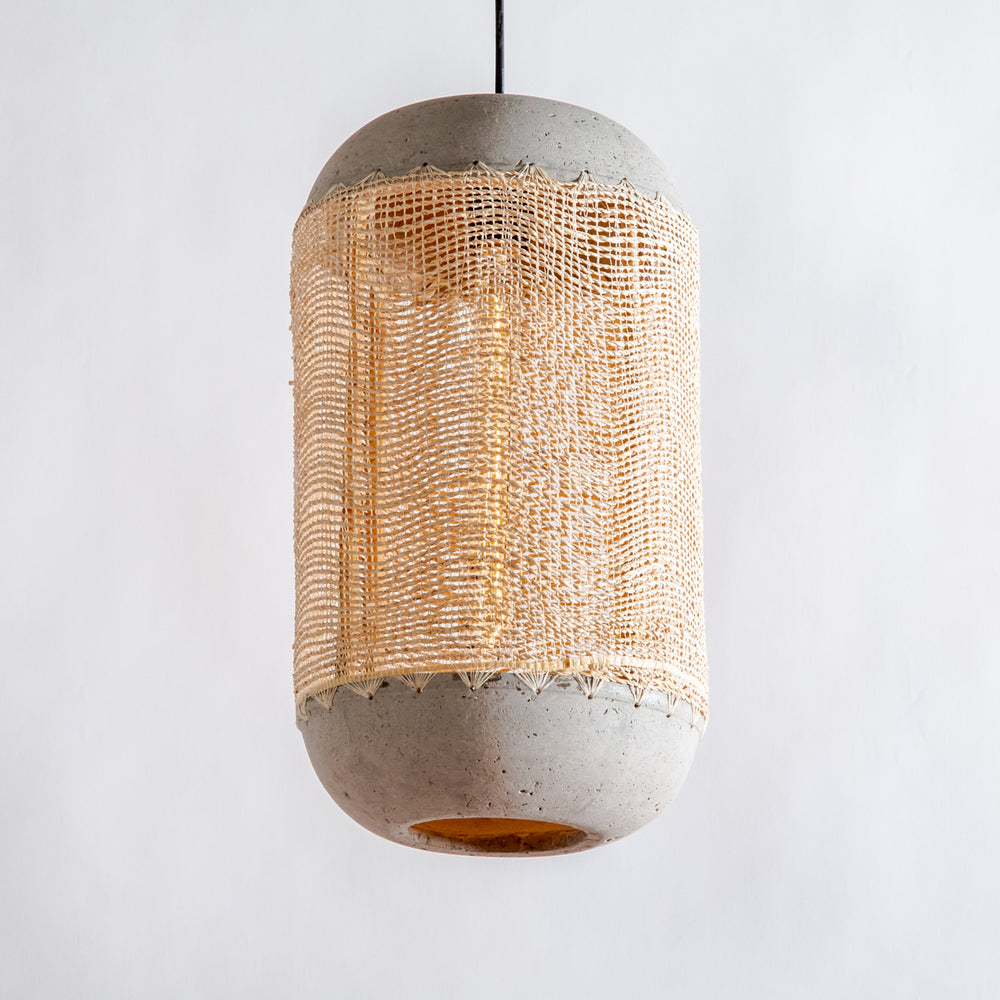 This pendant lamp emits its glorious light through the banana fiber weave. The faux concrete support on both ends lend an appealing contrast that adds to unique beauty of this hanging light.