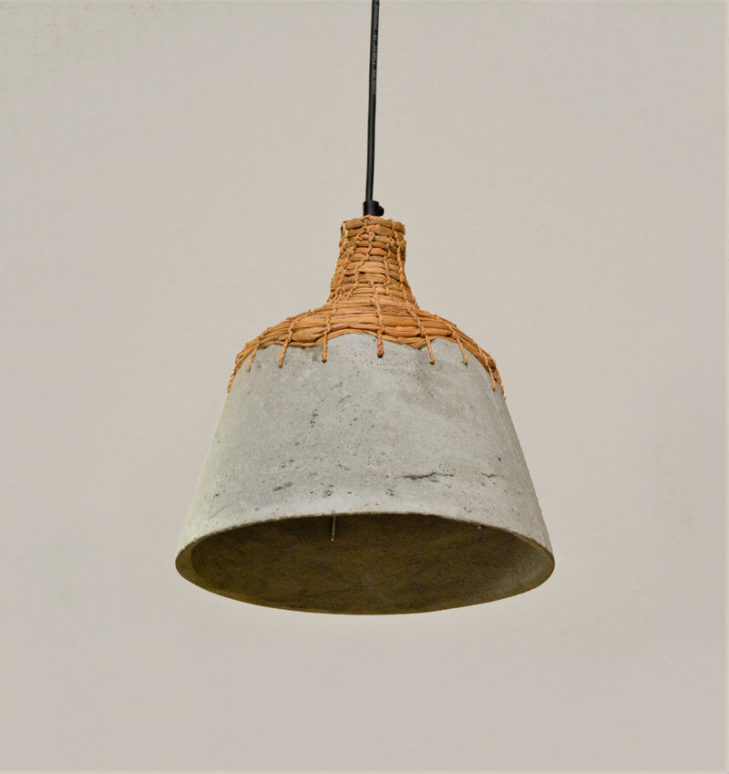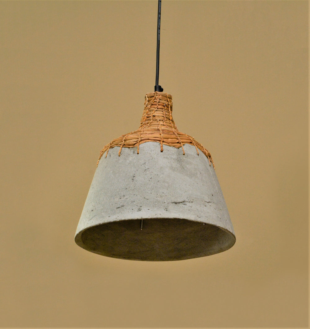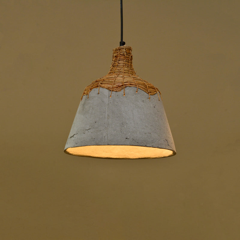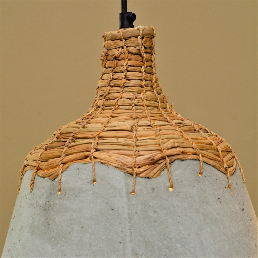 The weave made from water hyacinth fiber provides firm support to the faux concrete body and together they form this mystical pendant lamp. The contrasting textures and surfaces lend an artistic appeal to this hanging light.
