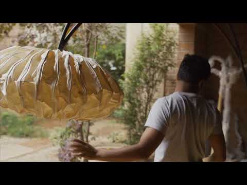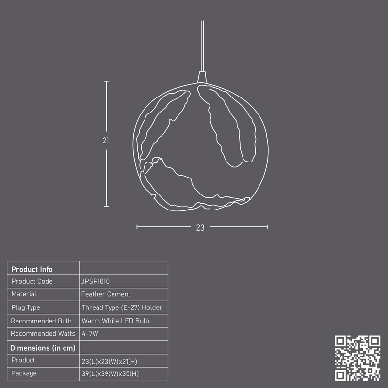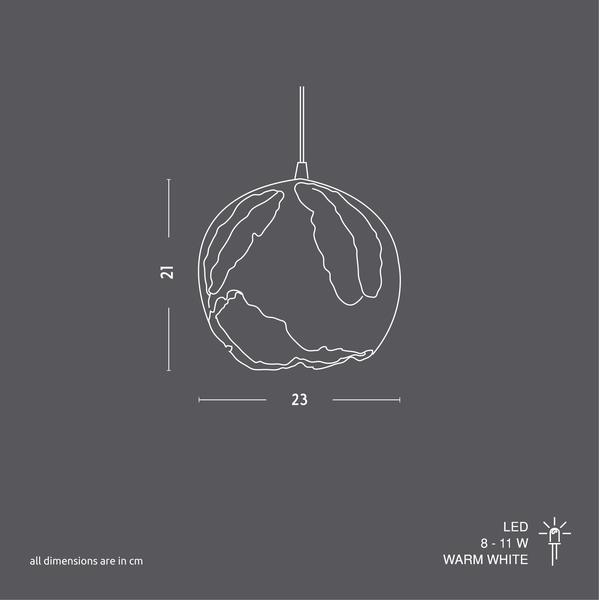 Hanging Pendant Lamp with gold embossed leaf in the weathered imperfections of feather cement enriched by colour of the year.