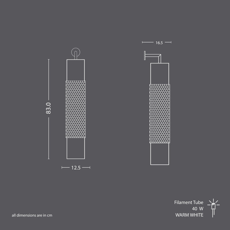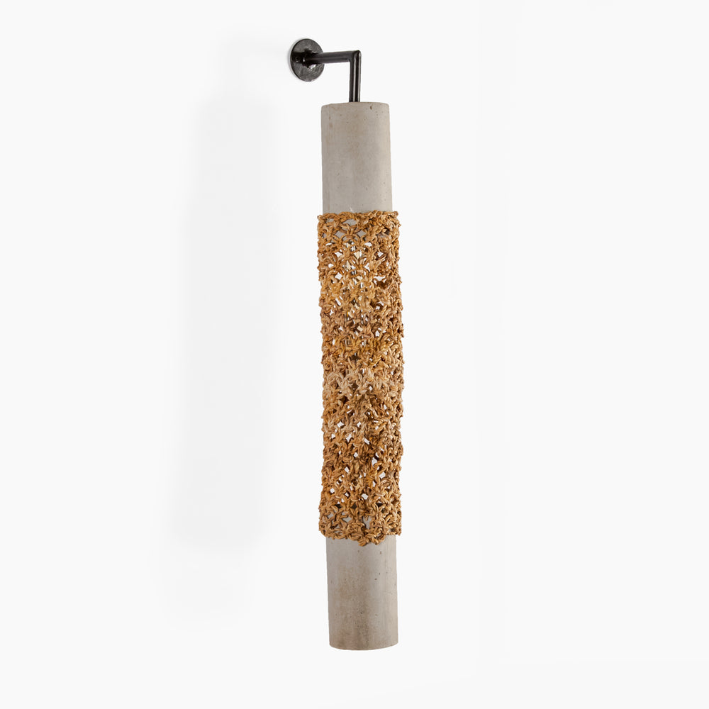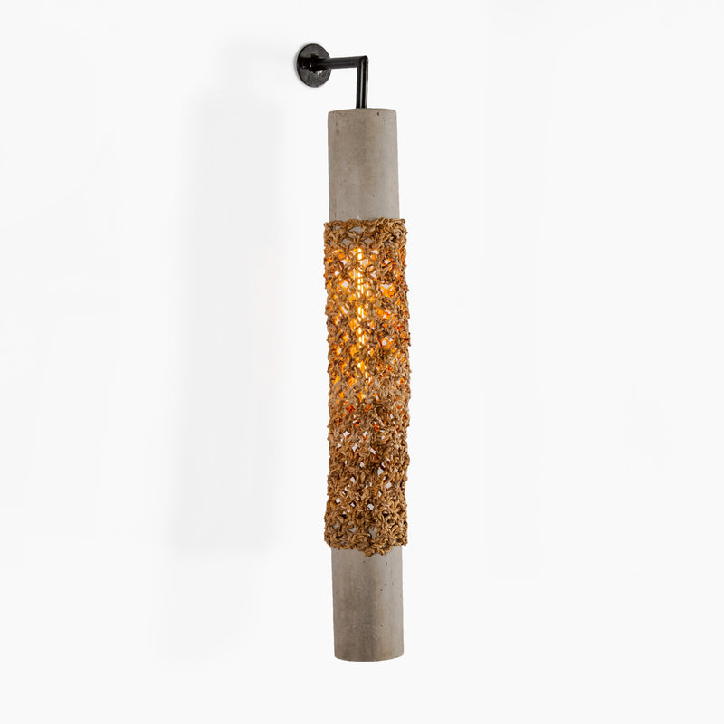 The simple pipe form becomes unassumingly stylish in this wall lamp made of faux concrete and banana fiber. The weave screens light in a way that adds a mystic charm to this wall lantern.