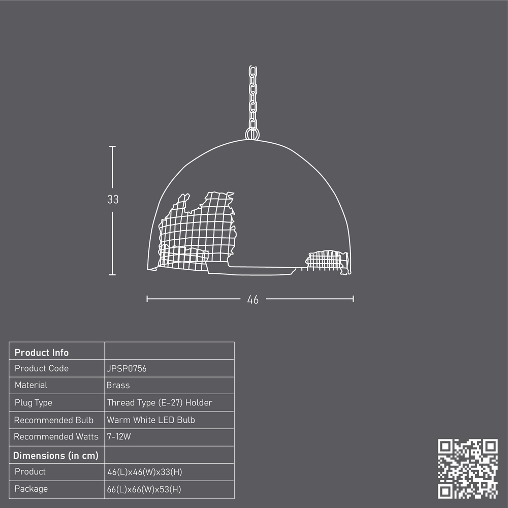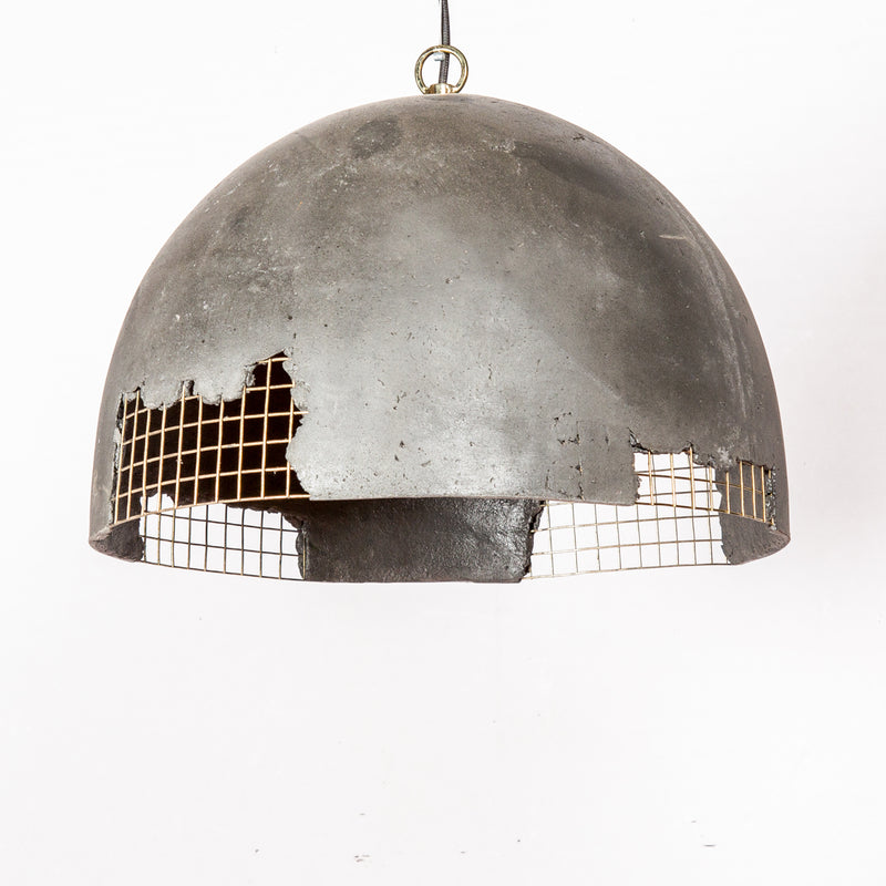 Inspired by the alluring night sky, this hanging Black Relic fusion lamp, handcrafted from pigmented feather cement with a canopy brass mesh and brass fitting, could make for great décor lighting in living and hospitality spaces.