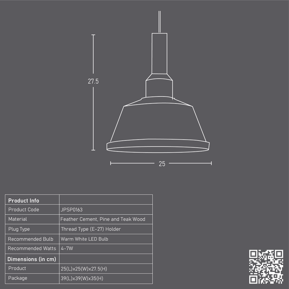 Locking in the beautiful imperfections of handcrafted feather cement in a hanging Woodlot Cresset lamp with a pine wood top, to tastefully light up a living or hospitality space.